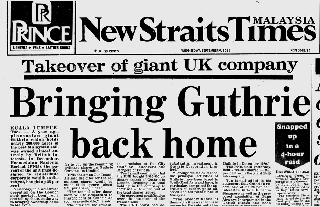 Guthrie Corporation Limited's plantation interests came home to Malaysia. Plantation assets in Malaysia and overseas together with the marketing and distribution network companies in the UK and the US were transferred to Kumpulan Guthrie Sdn Bhd.